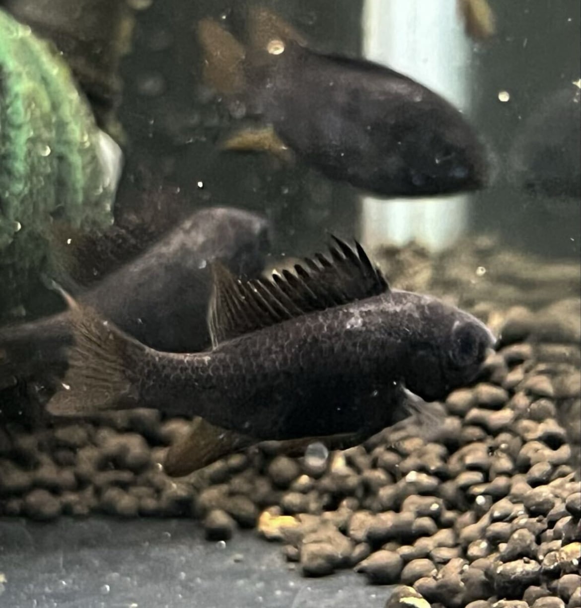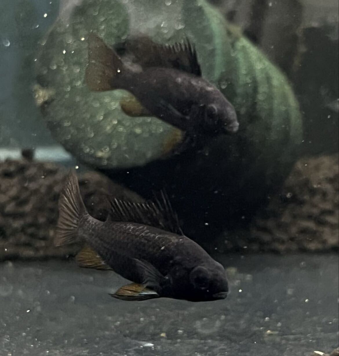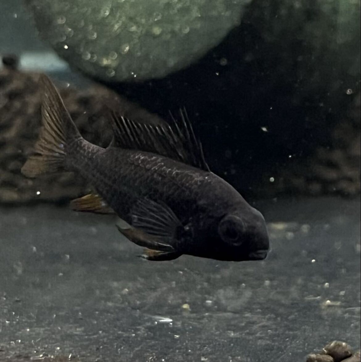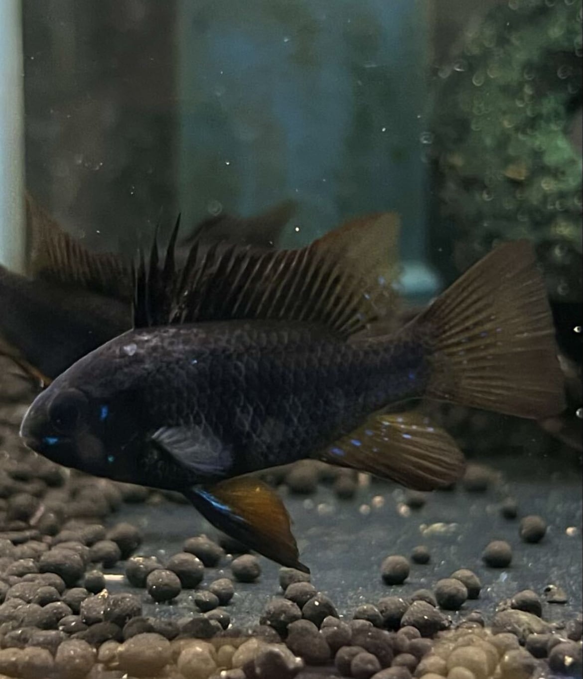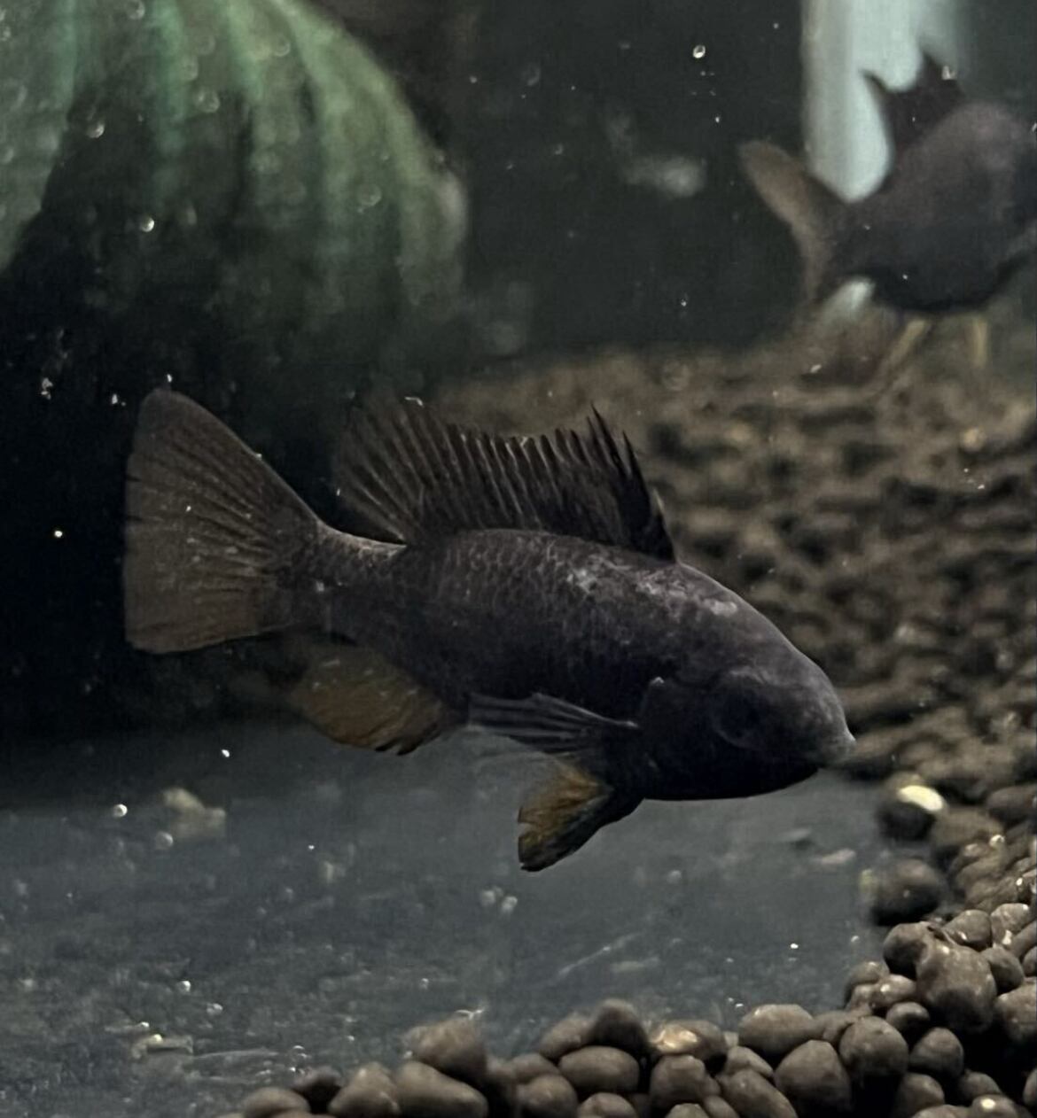 漆黒に映える鮮やかなオレンジとブルーのヒレが魅力的な、非常に上品なラミレジィです。 小型ながらも存在感は抜群で、水槽のアクセントとして一目で目を引く贅沢な仕上がり。 その深みのある漆黒のボディは、暗めの水槽背景と合わせることで、より一層引き立ちます。 ヒレのオレンジとブルーのカラーリングは、夜空と星空のような対比が美しく、見る者を惹きつけてやみません。 コレクター心をくすぐる希少価値とともに、飼育のしやすさも兼ね備えているため、初心者から玄人まで満足できる逸品です。 飼育環境もシンプルで、水温25〜28℃、中性〜弱酸性の水質で飼育可能。 美しい色彩と繊細なヒレの動きは、水槽の照明と調和し、まるでアクアリウムの芸術品のようです。 また、丈夫で飼育しやすいため、長く美しい状態を楽しむことができます。 水槽の中でただ飾るだけでなく、その存在感と美しさを存分に味わえるスーパーブラックラミレジィ。 コレクションや水槽のハイライトにぴったりです。 新しい水景を作りたい方や、他では手に入らない特別な一匹をお探しの方に最適です。 生体の繊細な美しさを、ぜひあなたの水槽で披露してください。