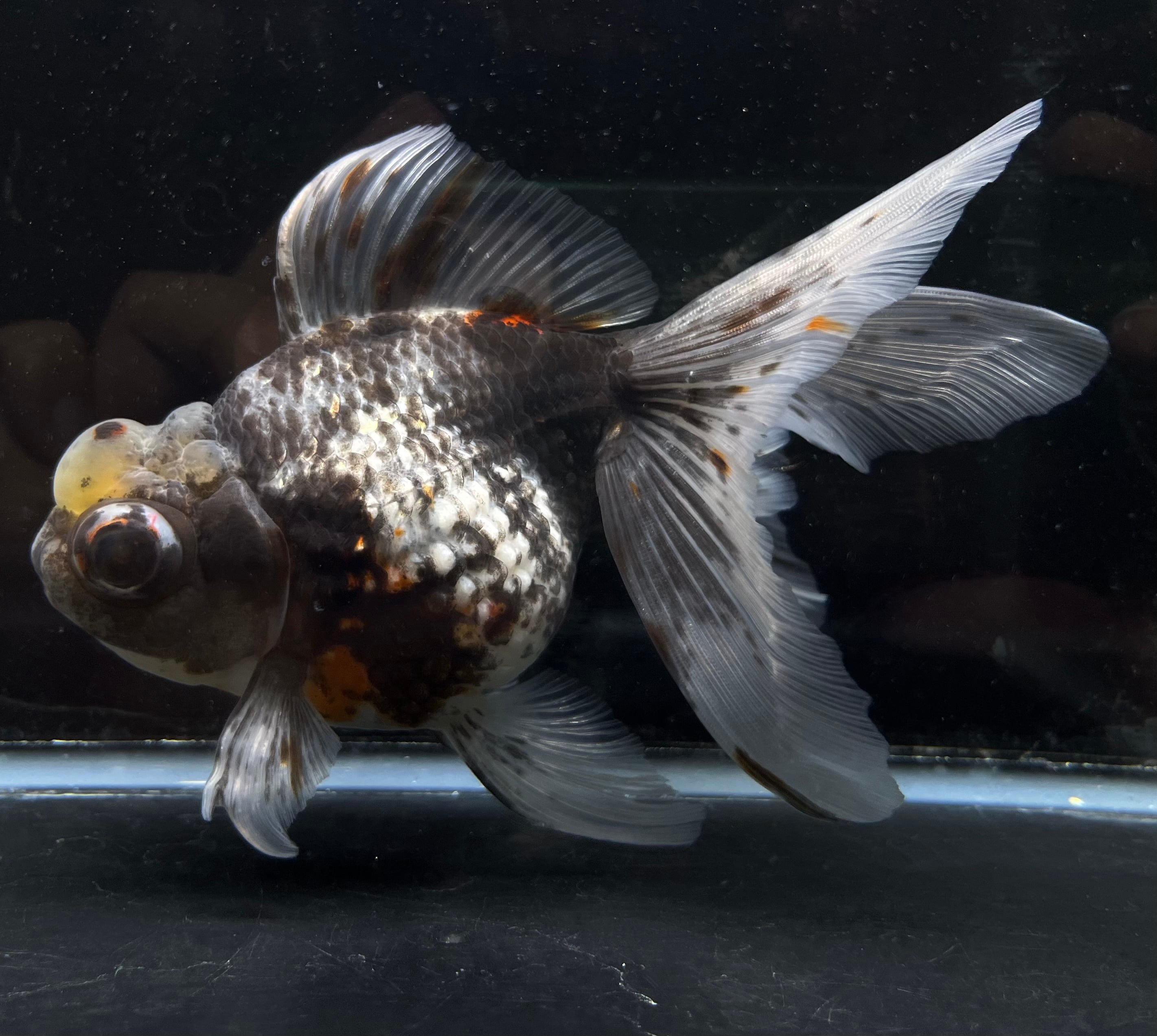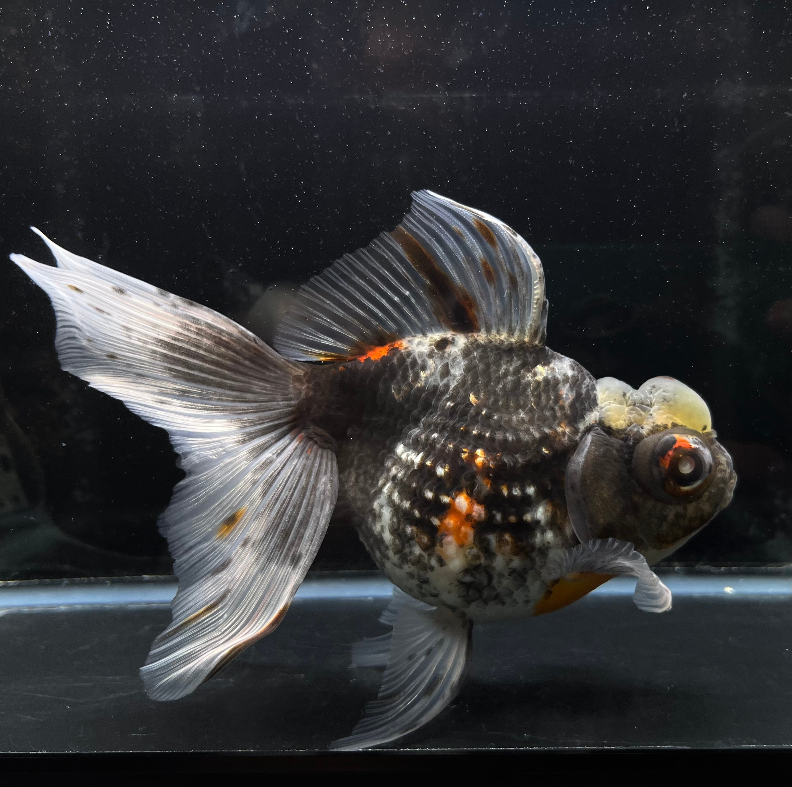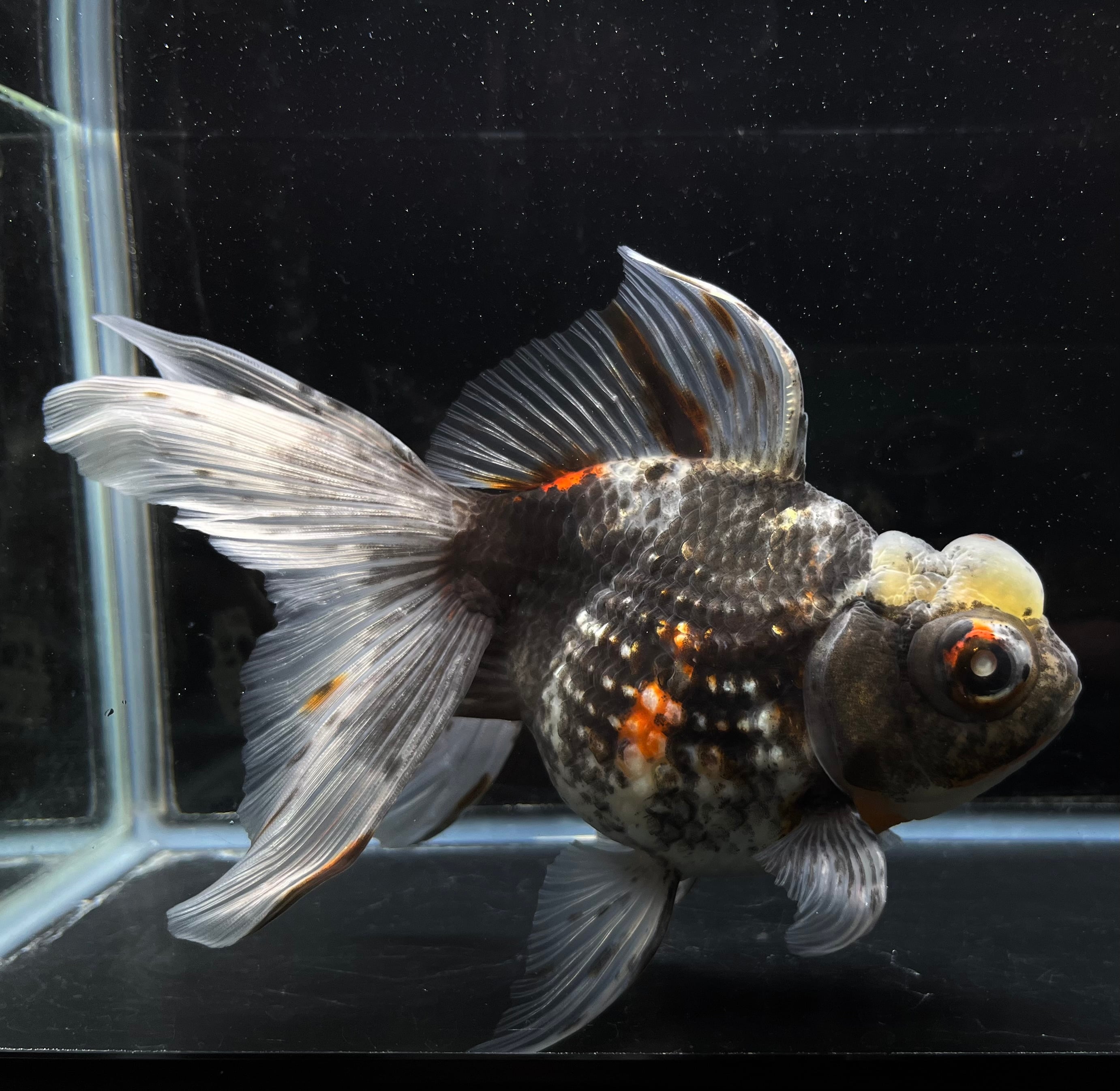 高頭出目パール 五色キャリコ ブラックカラー 中国便 2歳 金魚 プレミアム品