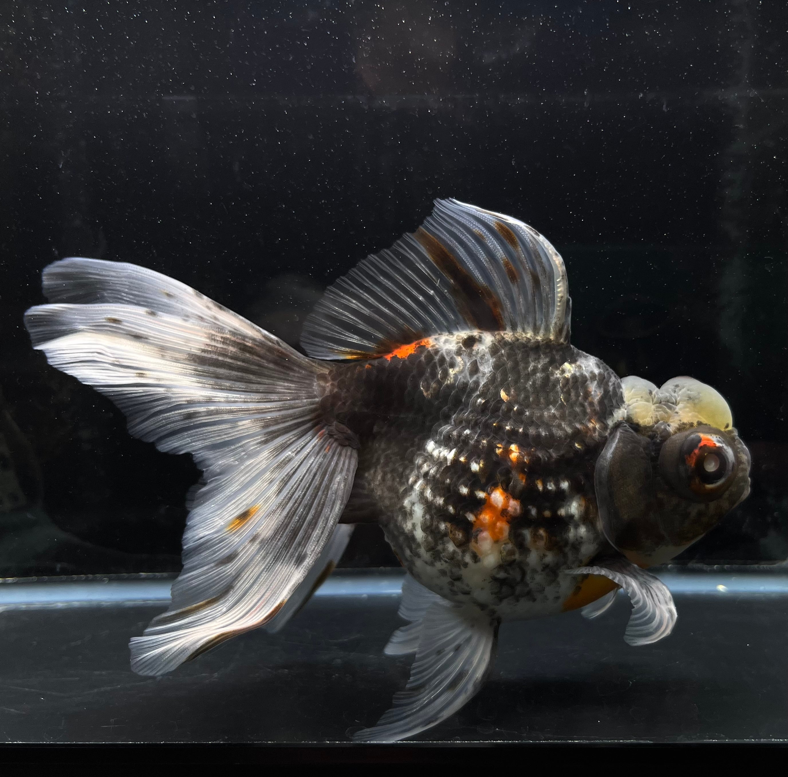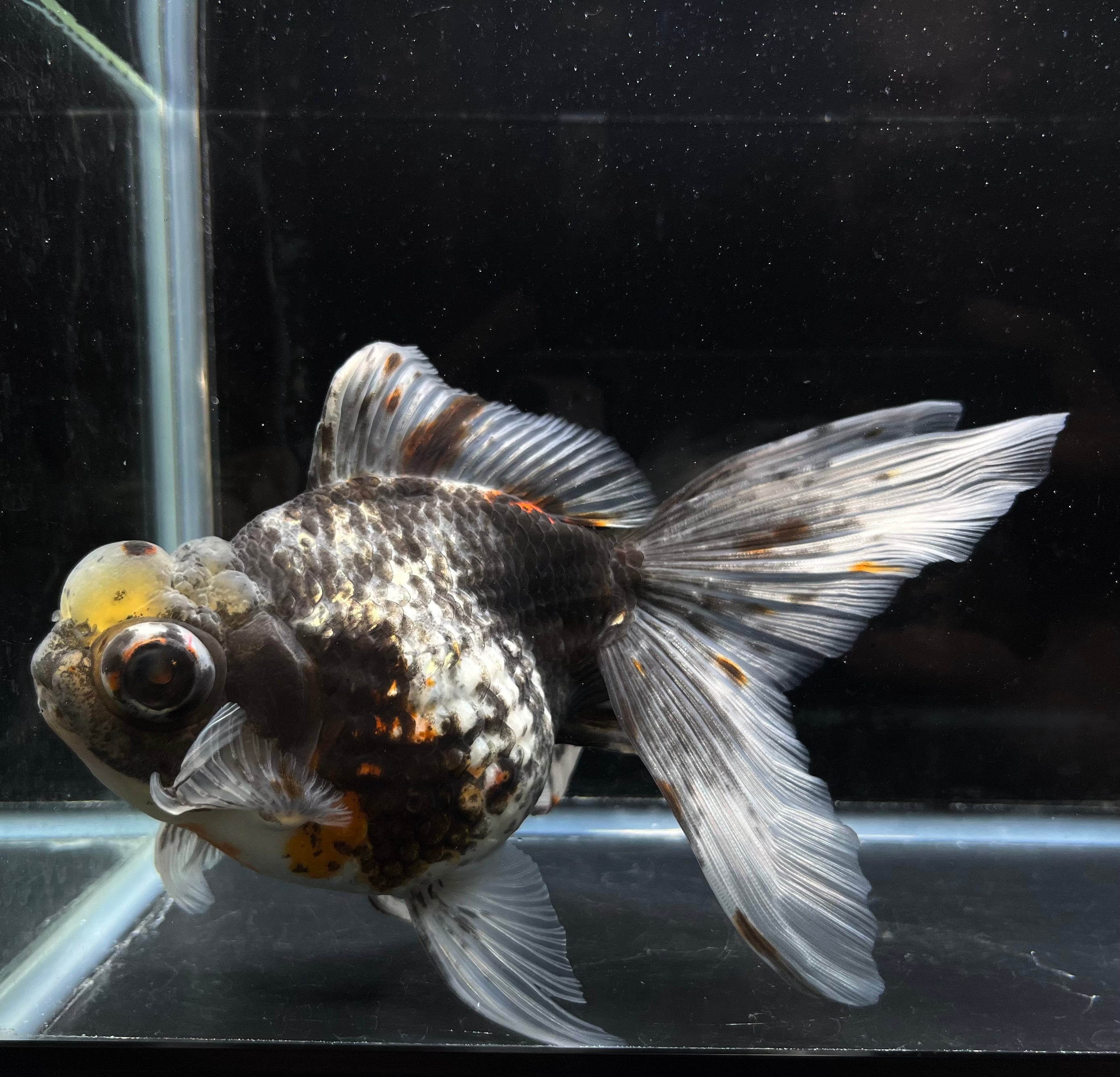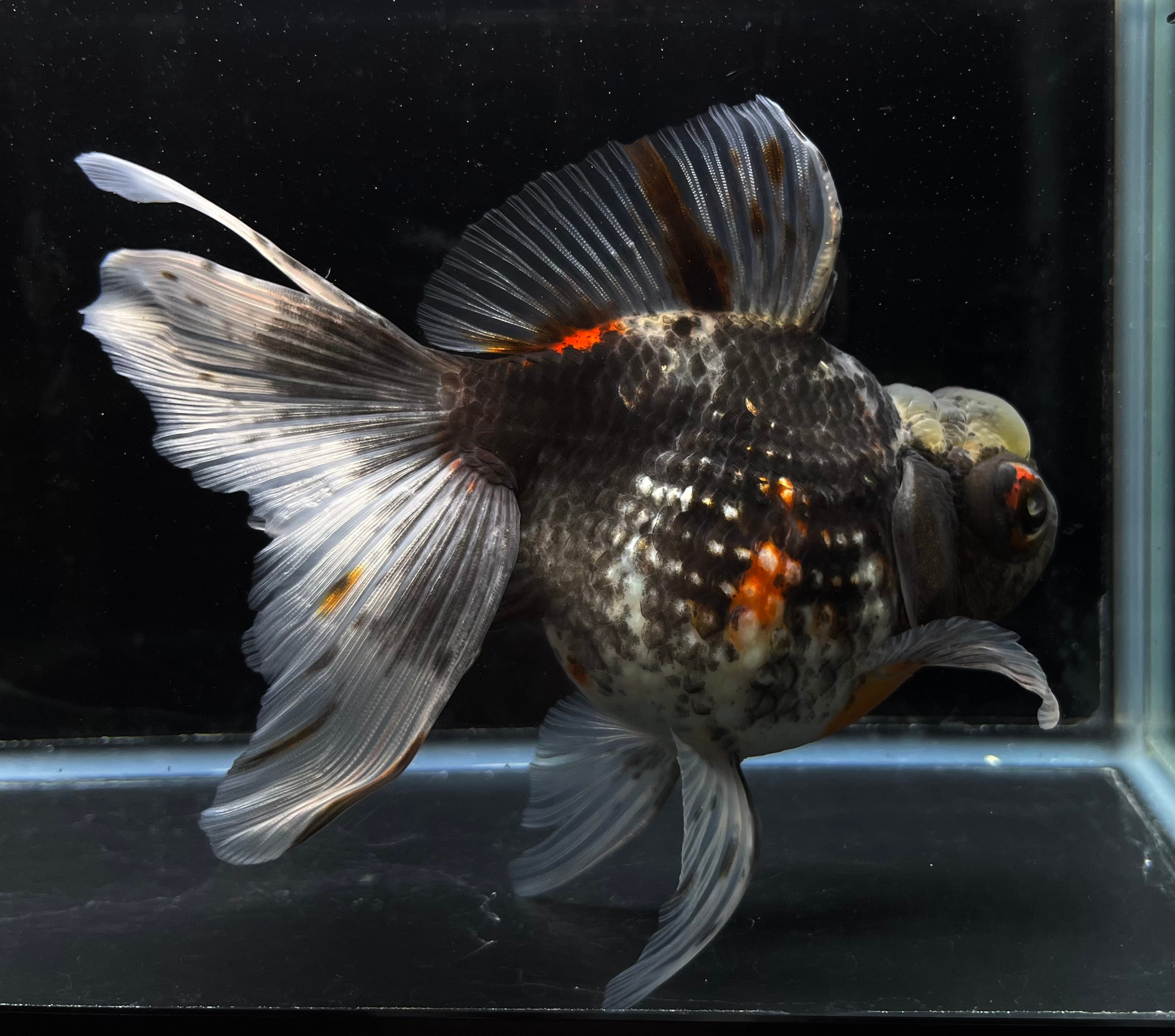 高頭出目パール 五色キャリコ ブラックカラー 中国便 2歳 金魚 プレミアム品