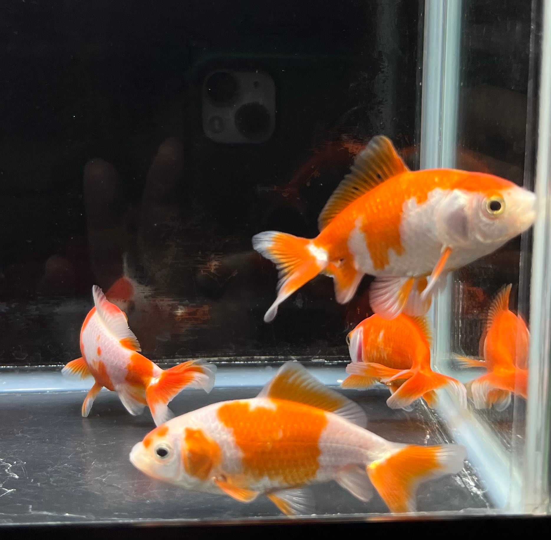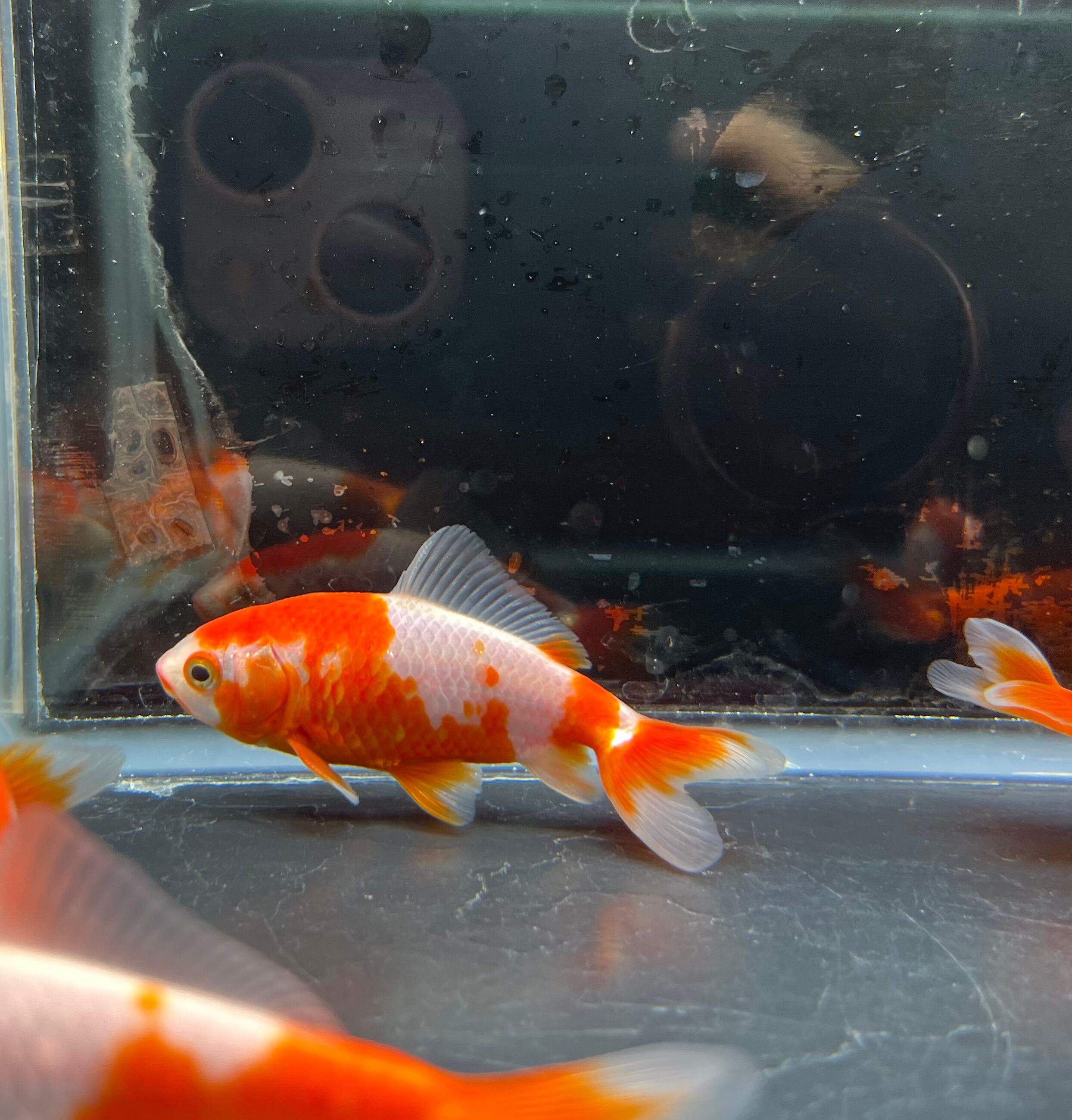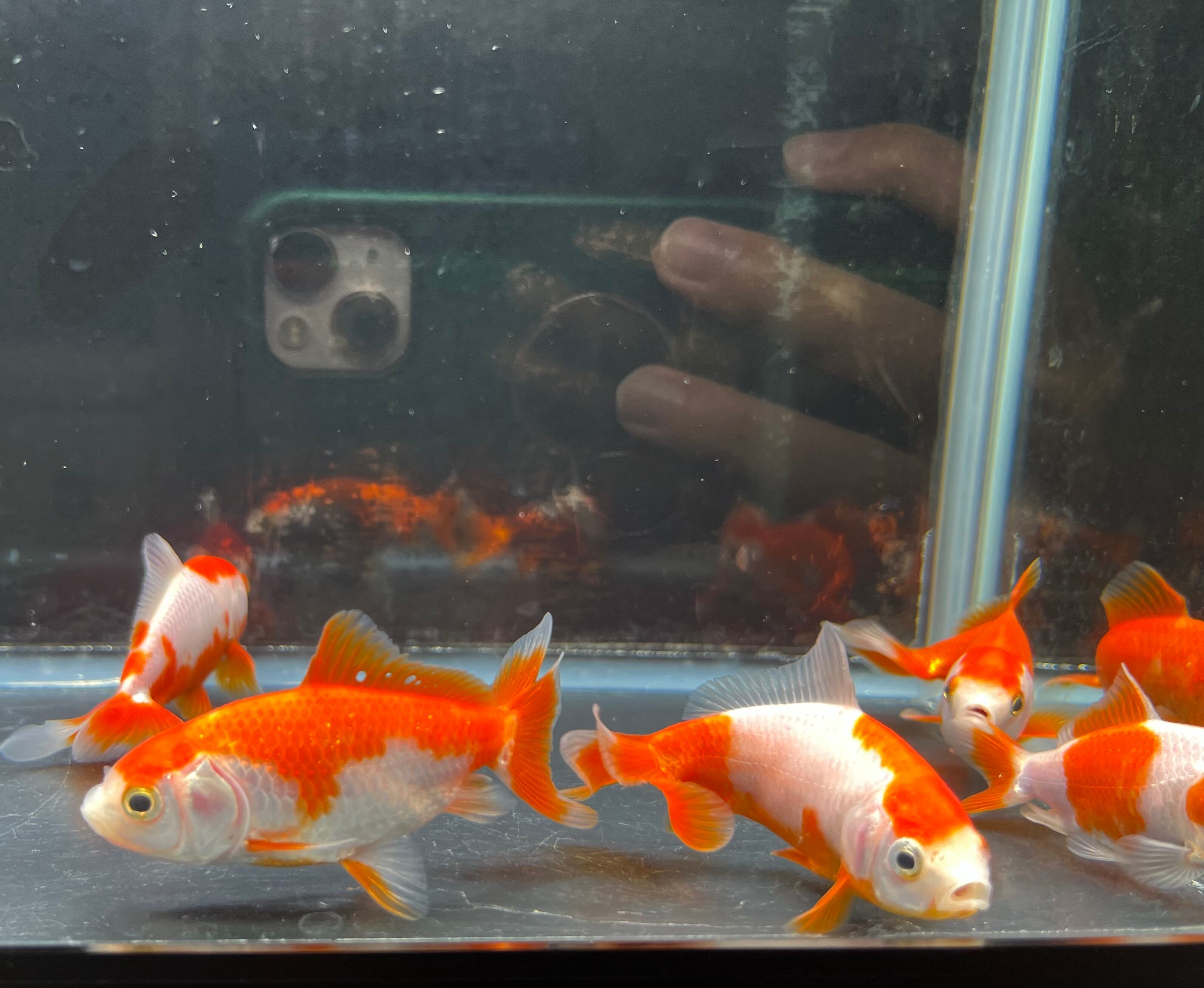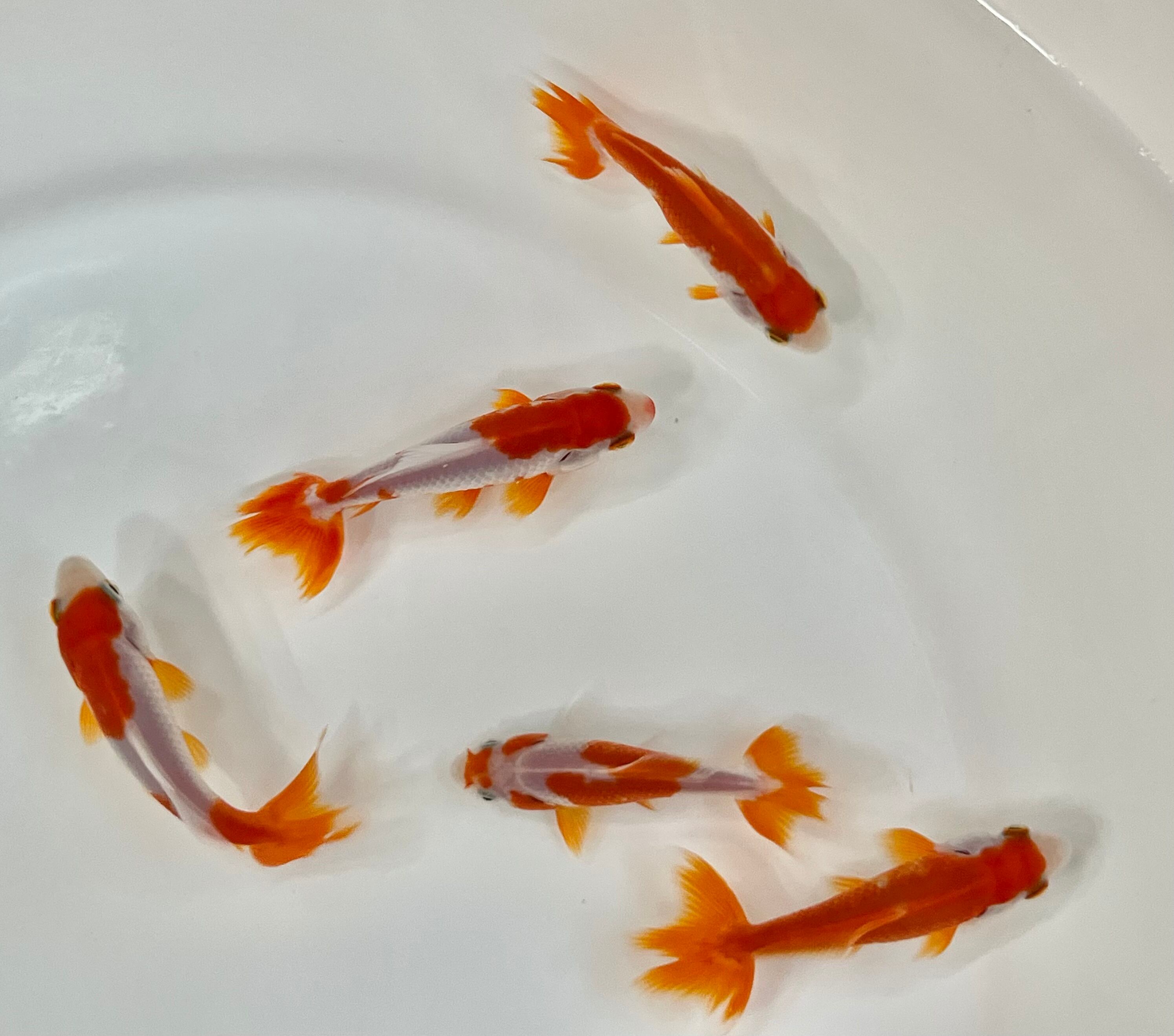 【人気種】 更紗三尾和金 赤白模様 鮮やか 金魚 5匹セット
