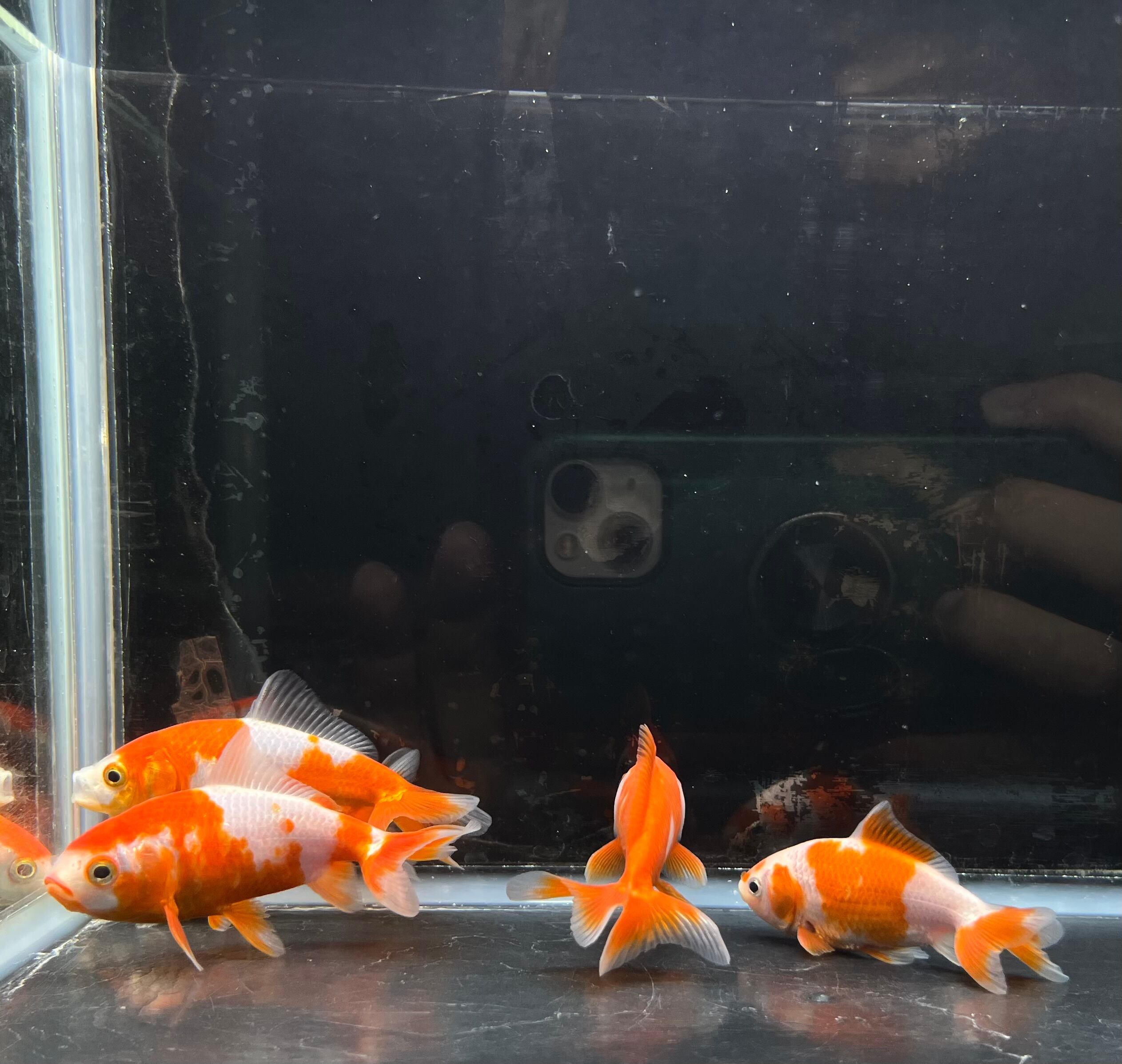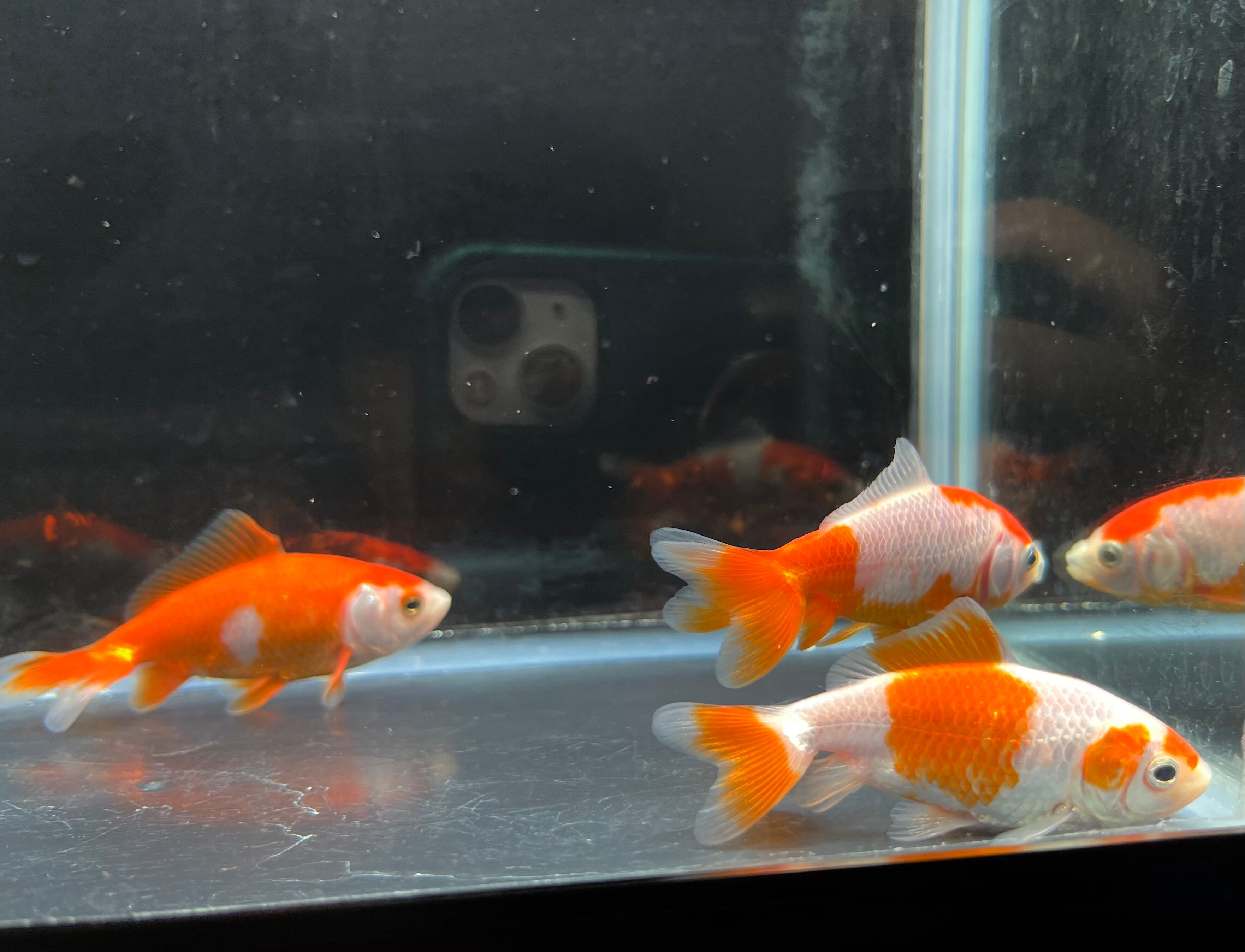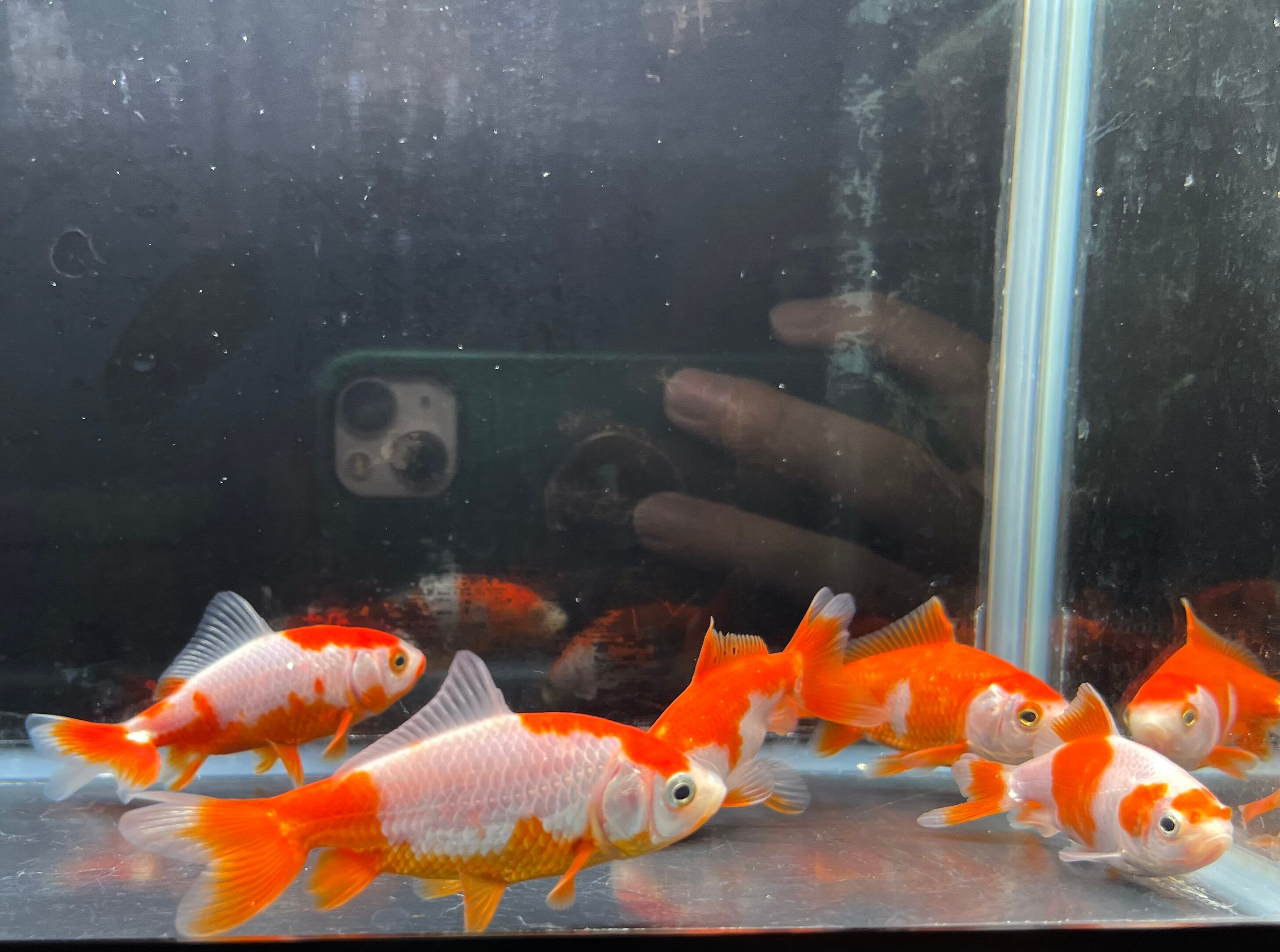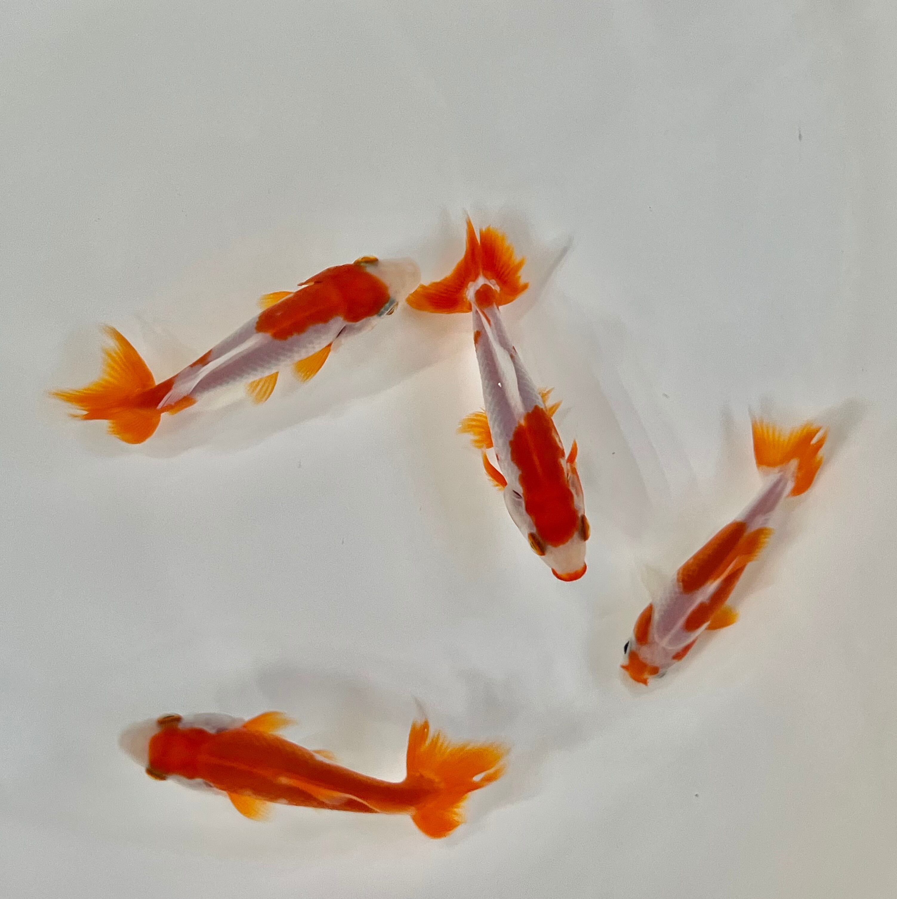 【人気種】 更紗三尾和金 赤白模様 鮮やか 金魚 5匹セット
