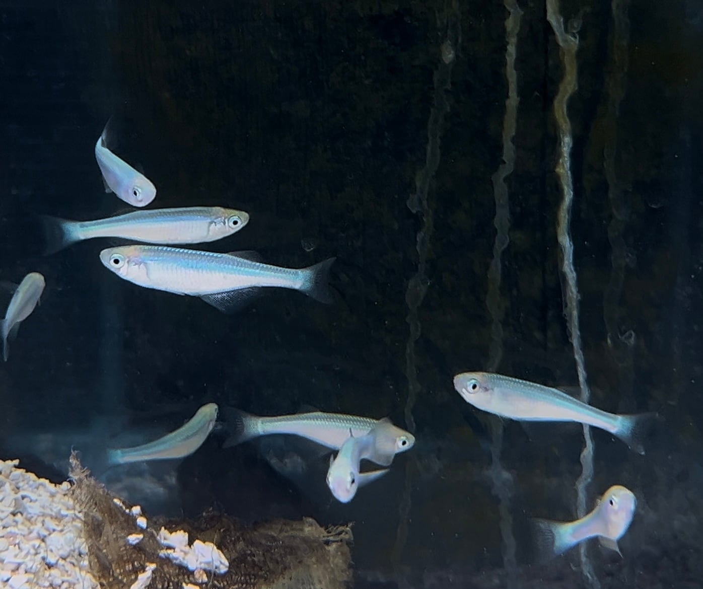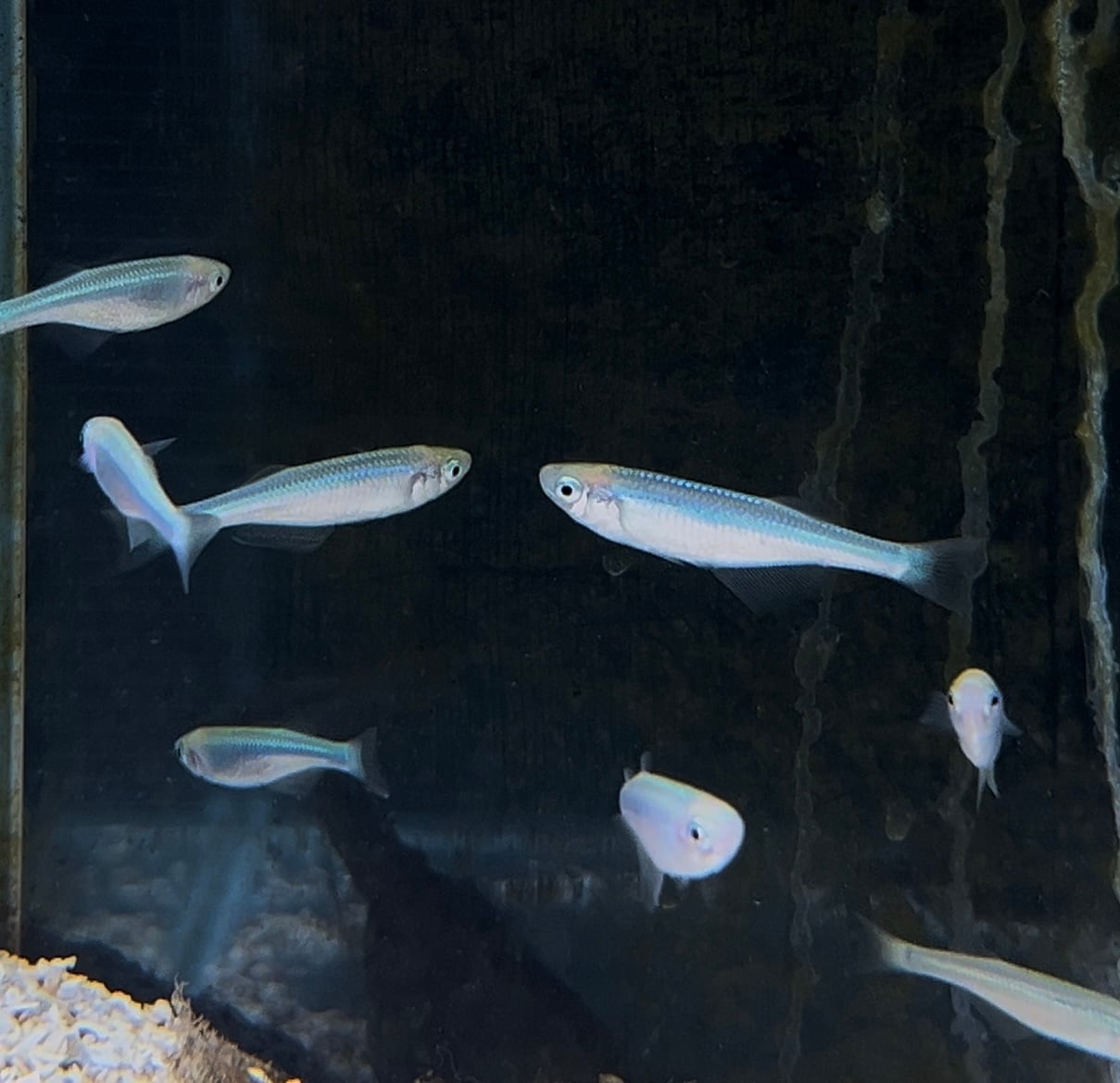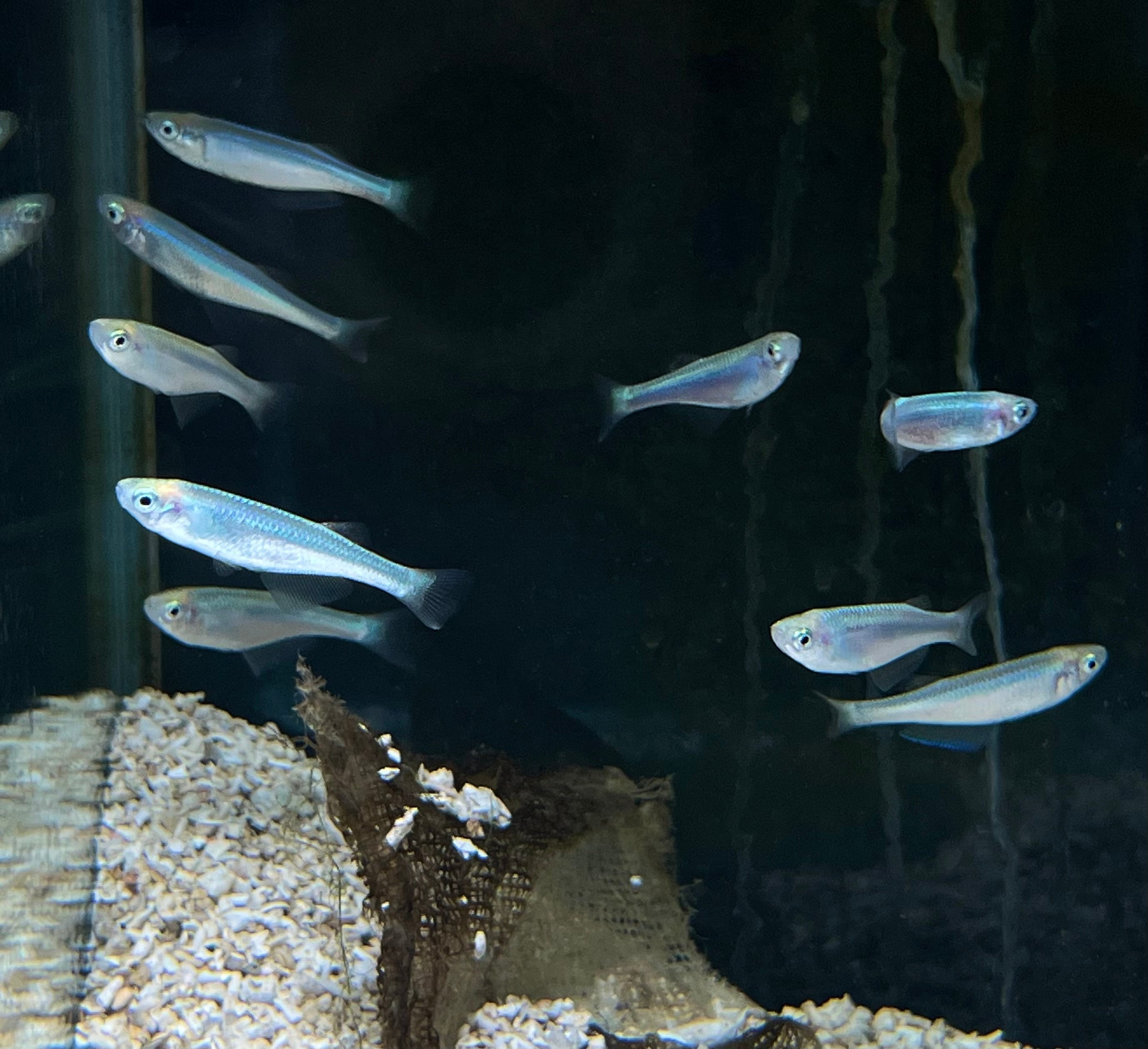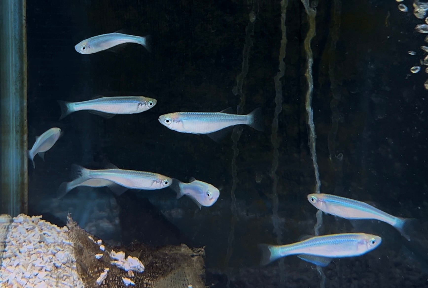 ランプリクティス・タンガニカヌス(Lamprichthys tanganicanus)は、アフリカのタンガニーカ湖周辺に自生するカダヤシの仲間で、美しい薄い水色から青みがかった金色に輝く体色が特徴の淡水魚です。最大で約15cmまで成長し、アフリカ最大のメダカ類として知られています。理想的な飼育環境はpH7.5~9.0の硬度の高いアルカリ性の水質で、希少性が高く、滅多に輸入されることがありません。タンガニーカ湖水槽やアフリカンシクリッド水槽をお持ちの方のコレクションに、ぜひ加えてみてはいかがでしょうか。魅力的な一匹として長くお楽しみいただけると思います。 この機会に、希少で美しいランプリクティス・タンガニカヌスをぜひお迎えください。