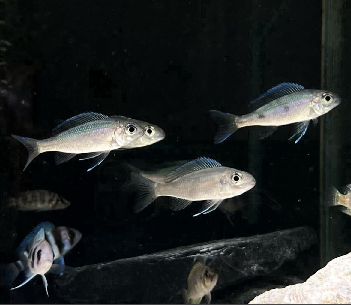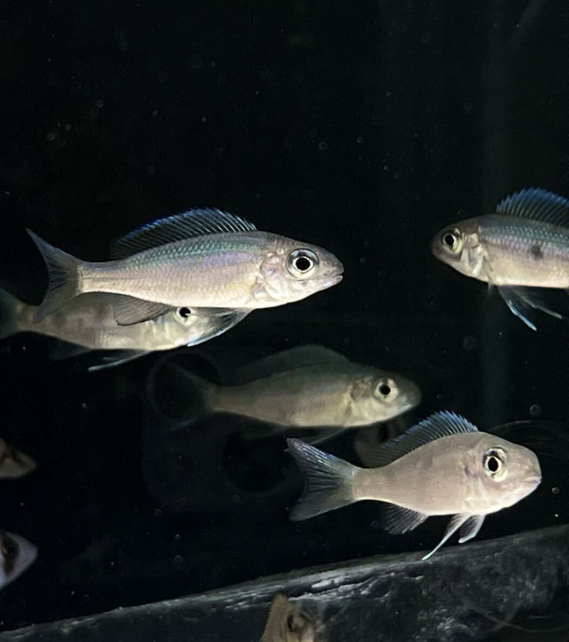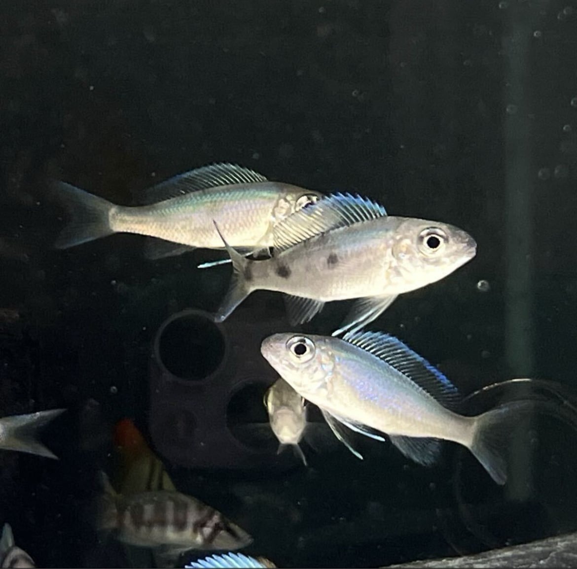 アフリカ・タンガニイカ湖に生息する希少なアフリカンシクリッドです。水槽の中でも存在感があり、優雅な姿で観賞価値の高い種類です。自然下では小さな群れをつくり、水槽内では中層から底層をゆったりと泳ぎます。砂を掘って巣や縄張りを作る習性があるため、水草を植える場合はレイアウトに注意が必要です。こうした独特の行動も、この魚ならではの魅力といえます。 性格は比較的おだやかですが、やや縄張り意識があるため、広めのスペースを確保すると安心です。希少性が高く、アフリカンシクリッドが好きな方やタンガニイカ湖をイメージしたレイアウト水槽にもよく合います。状態の良い個体を厳選してお届けしますので、この機会にぜひ魅力を味わってみてください。 日本ではあまり流通していませんが、学名 Ophthalmotilapia boops で検索すると、その美しい発色をご覧いただけます。