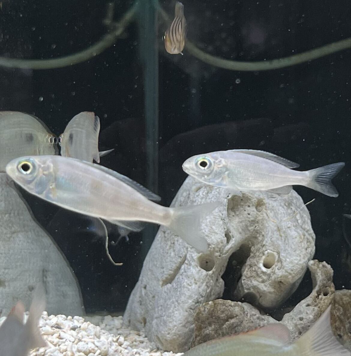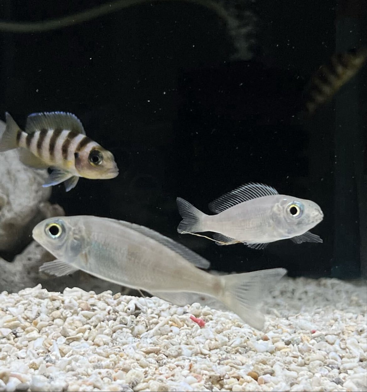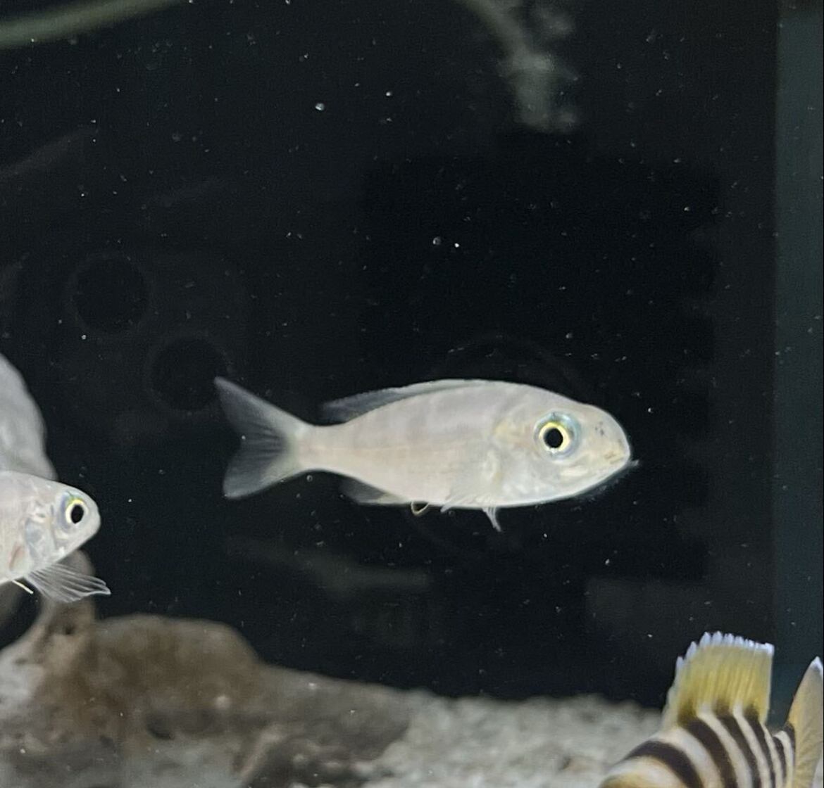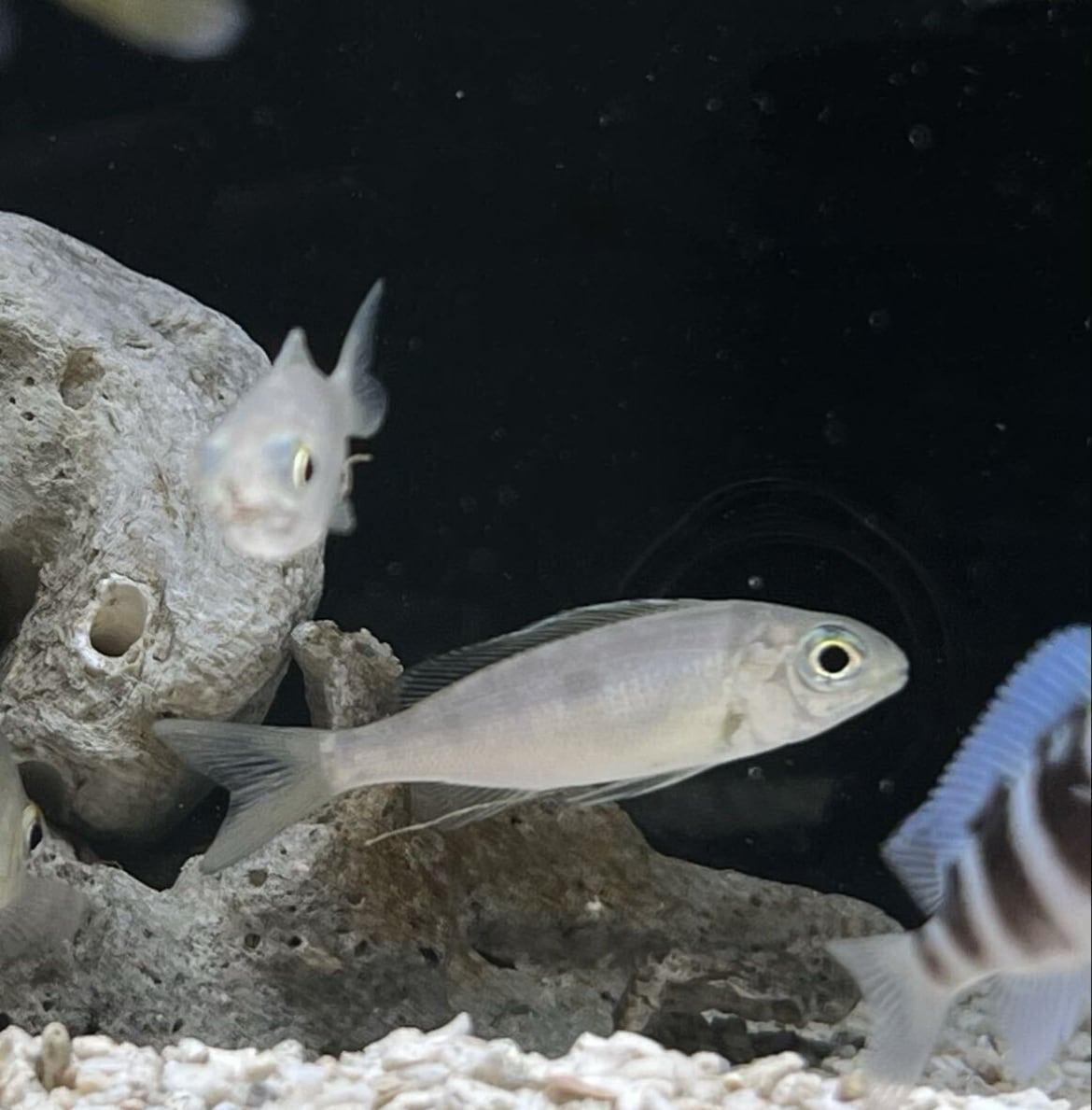 タンガニーカ湖に生息する美しいシクリッド、Cyathopharynx furcifer Reshaです。銀色の体に黄色のアクセントが入り、特に背びれと尻びれがよく目立ちます。普段は銀色ですが、婚姻色が出ると鮮やかで見惚れるほどの美しい色合いになります。また、「レシャ」という産地は、この種が日本に輸入された中でも聞いたことがなく、非常に珍しい希少なロカリティと言えます。 アフリカンシクリッドがお好きな方やタンガニイカ湖のコレクションに加えたい方におすすめの一品です。その独特な産地と婚姻色の魅力で、目を引く存在となるでしょう。 日本では珍しいため、発色が最高の画像をCyathopharynxfurcifer Reshaの学名で検索してみると、その美しさがよく伝わるかと思います。