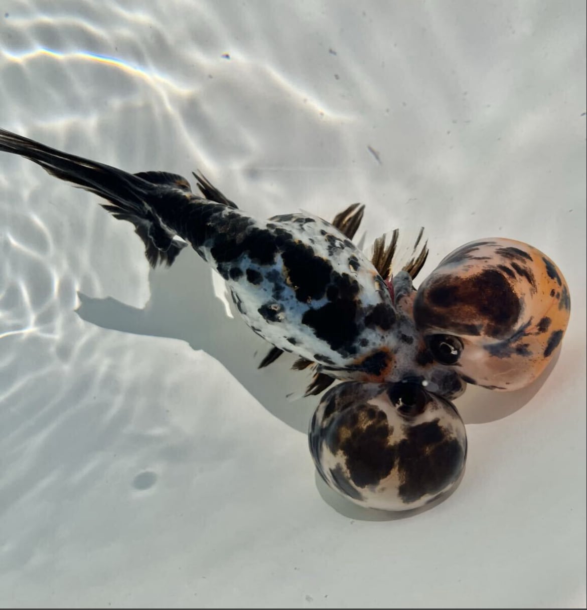 【訳あり 超大特価】中国便 五色水泡眼 金魚 中国金魚 水泡眼 二歳 約15〜17cm