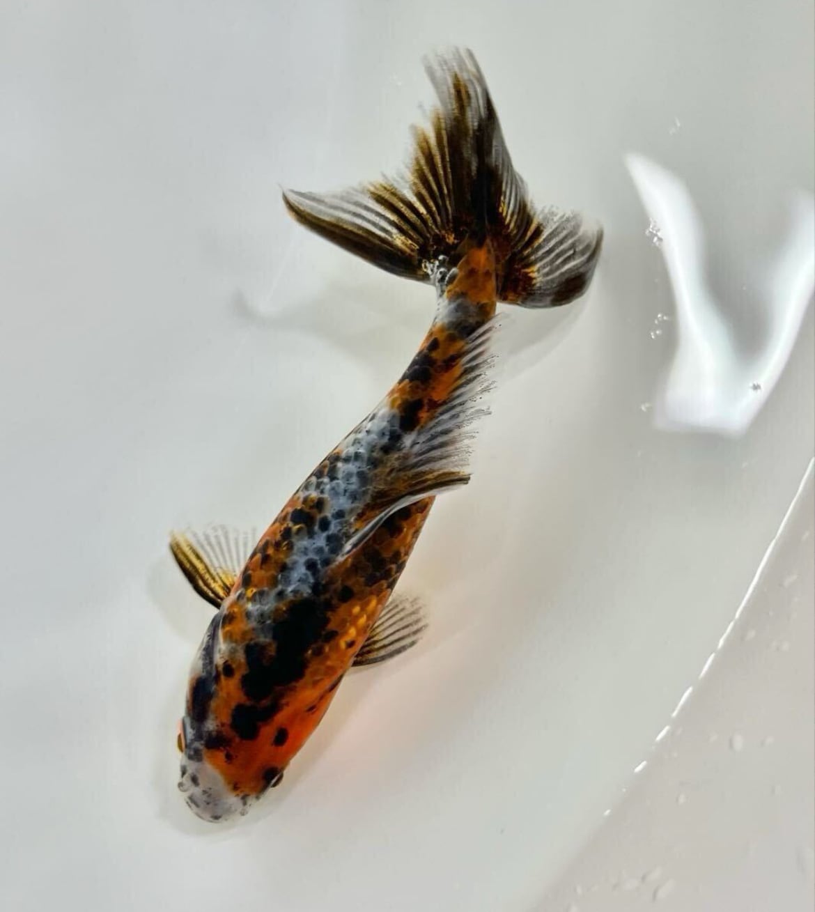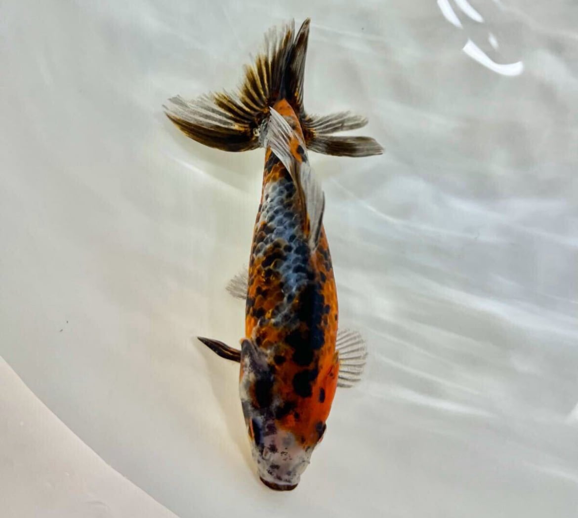 東川養魚場産 墨銀鱗和金 赤黒極上発色 約12cm 即決美魚 和金 金魚 長物金魚