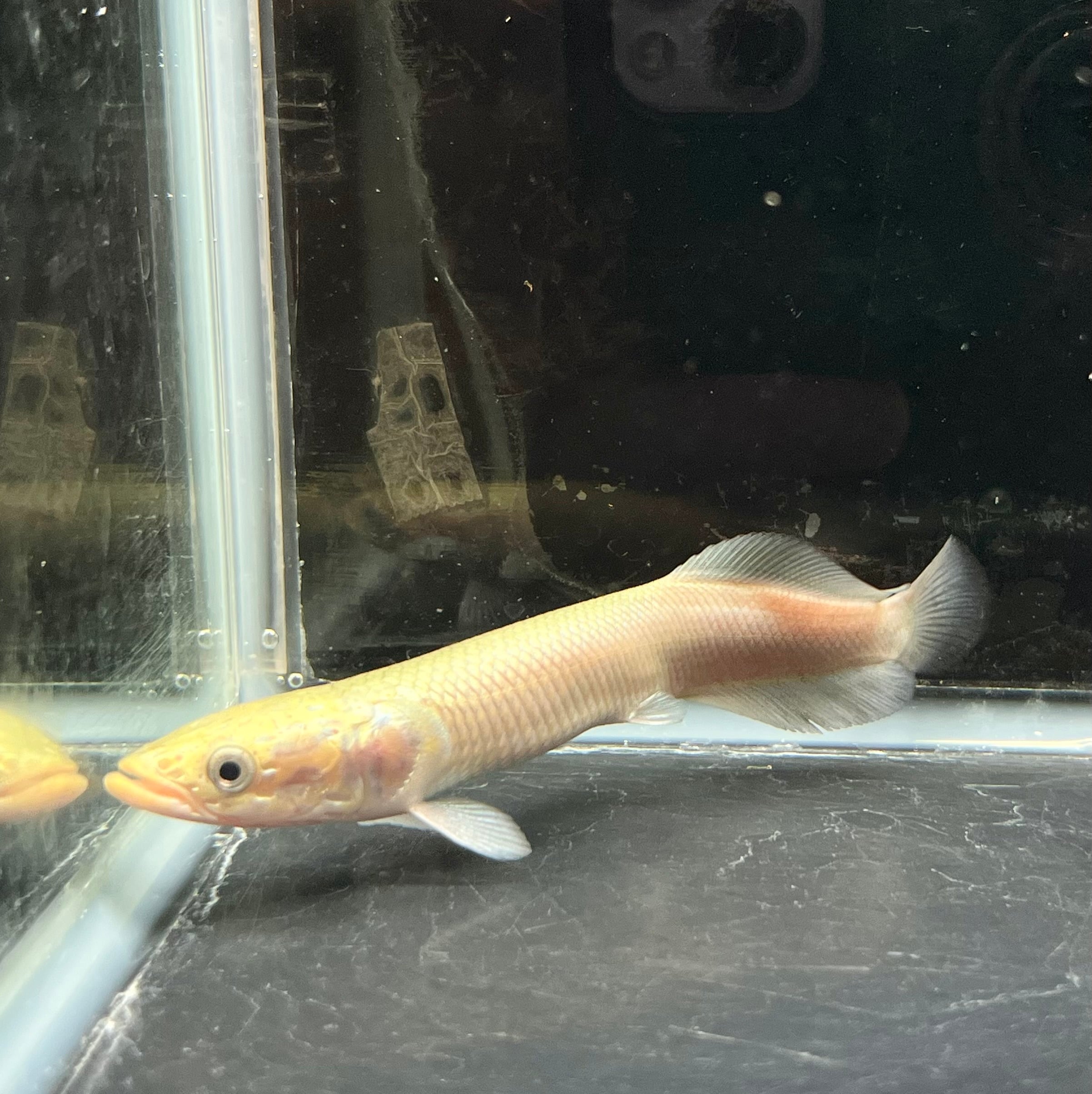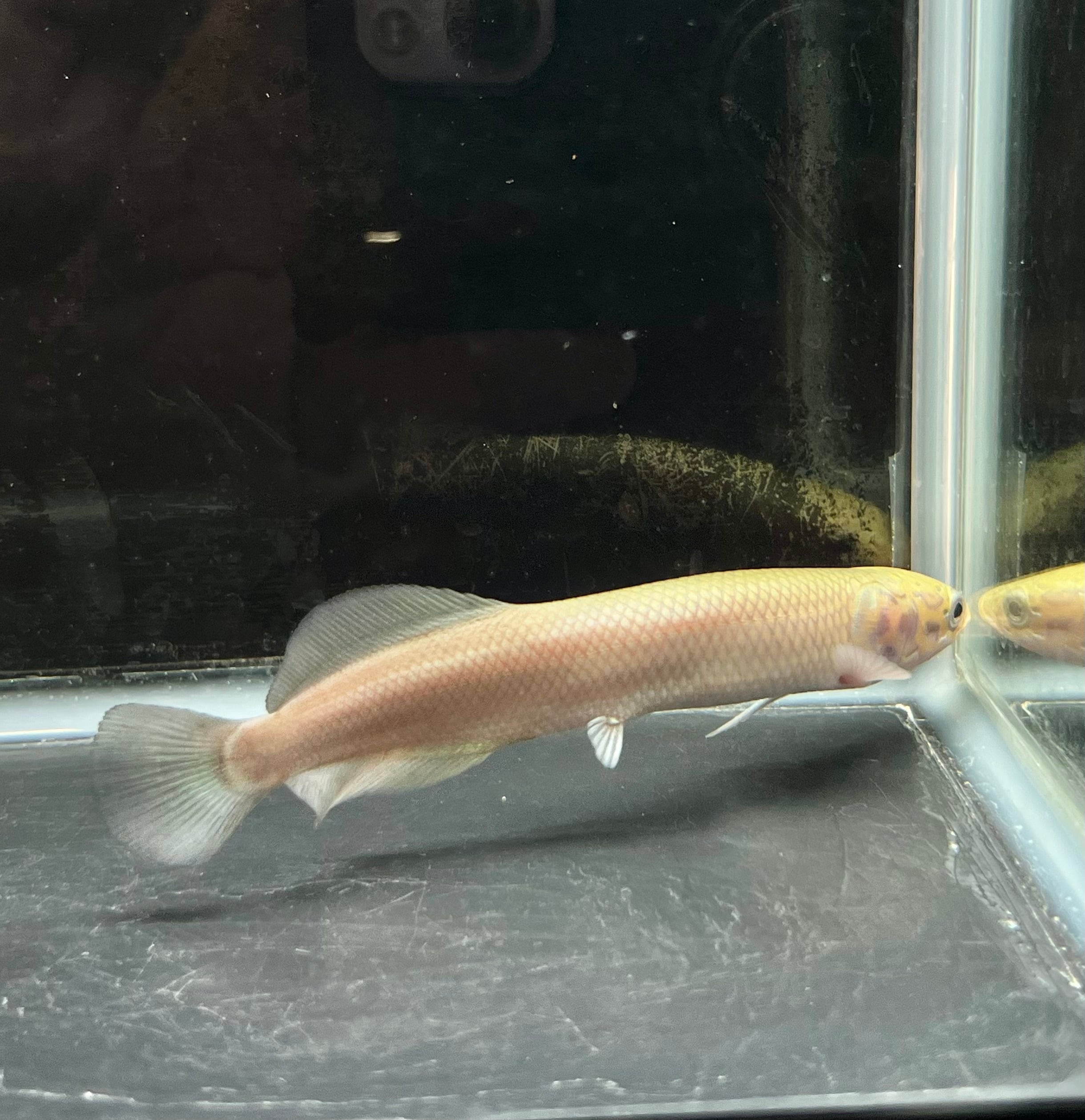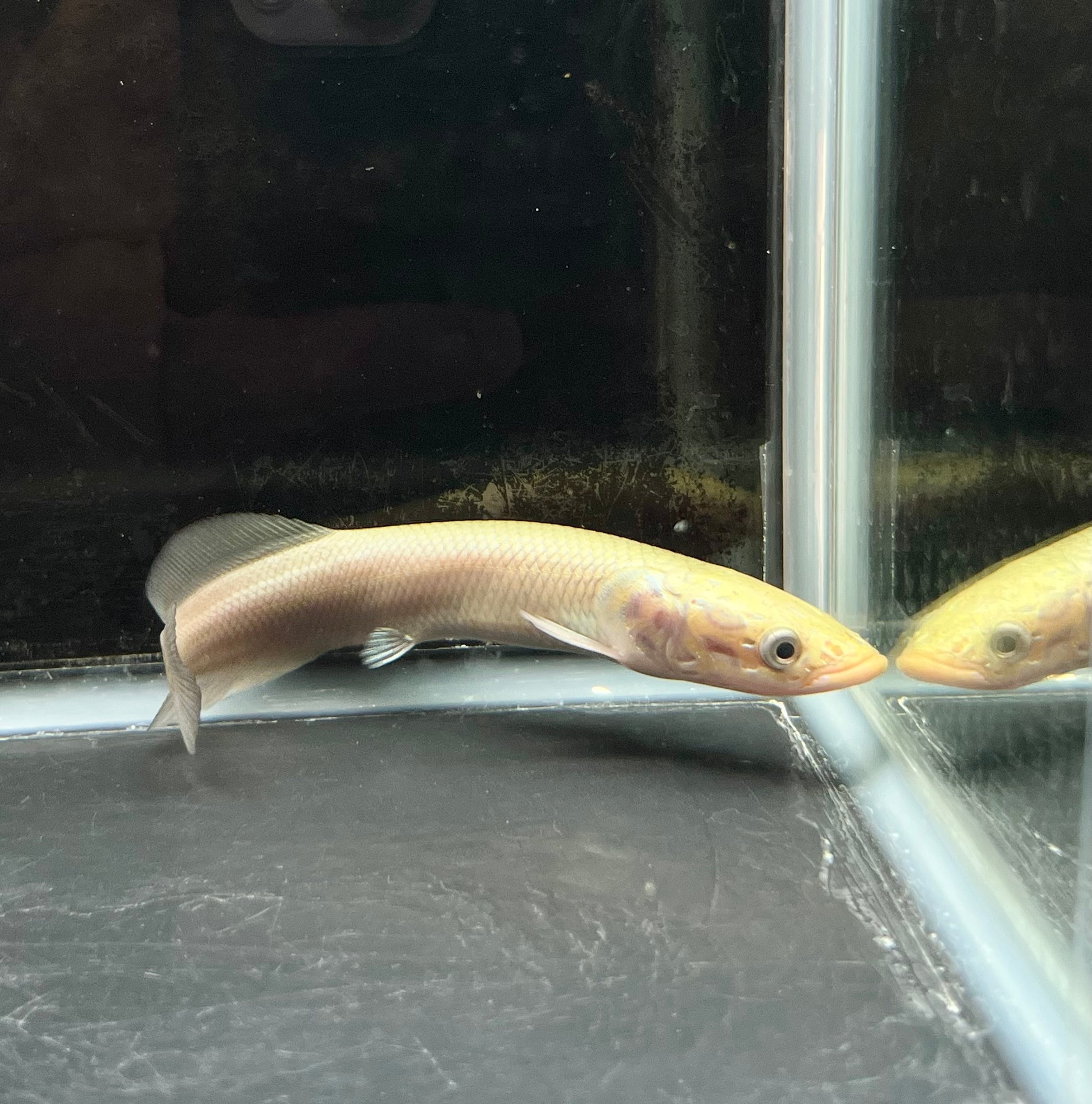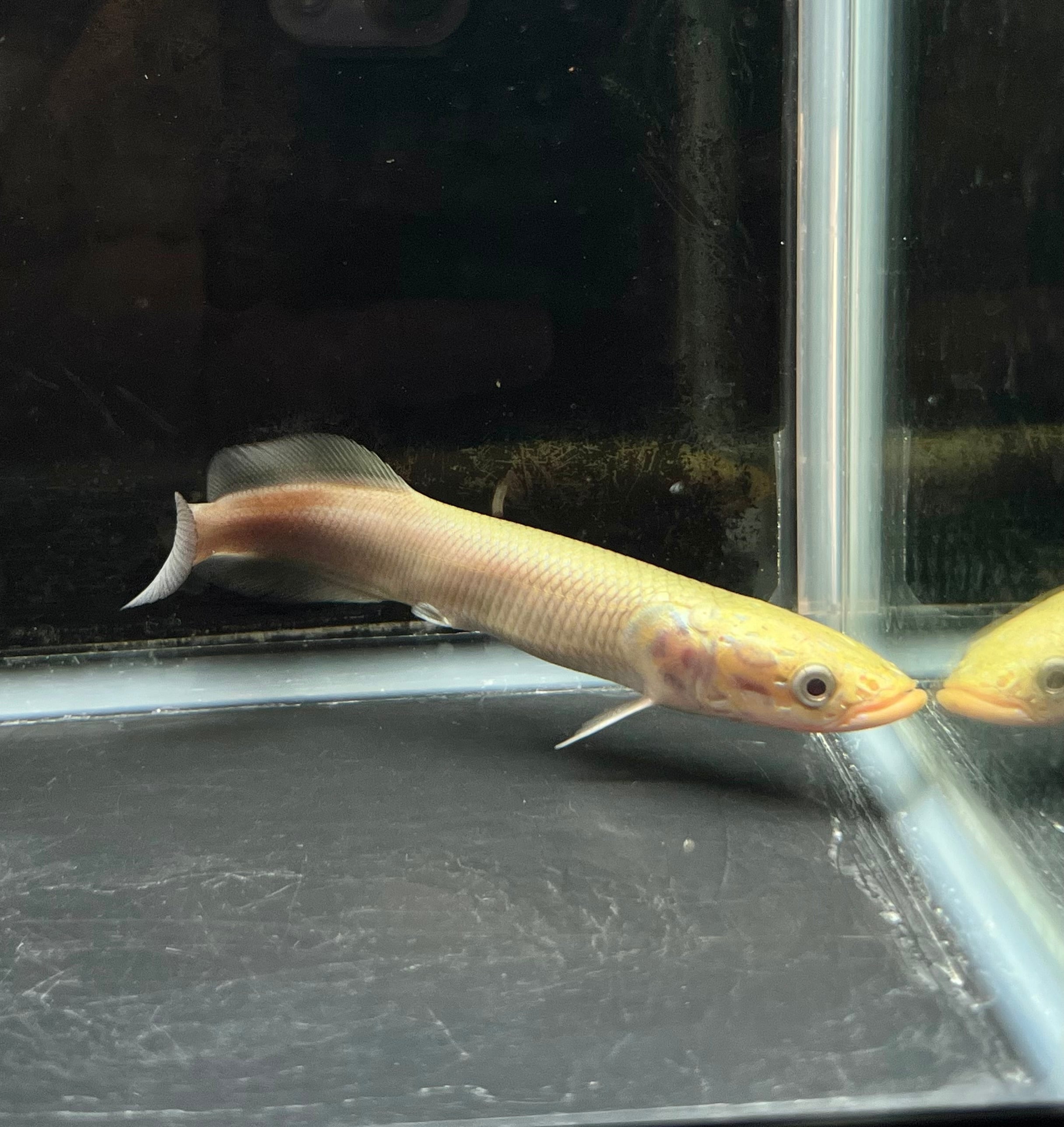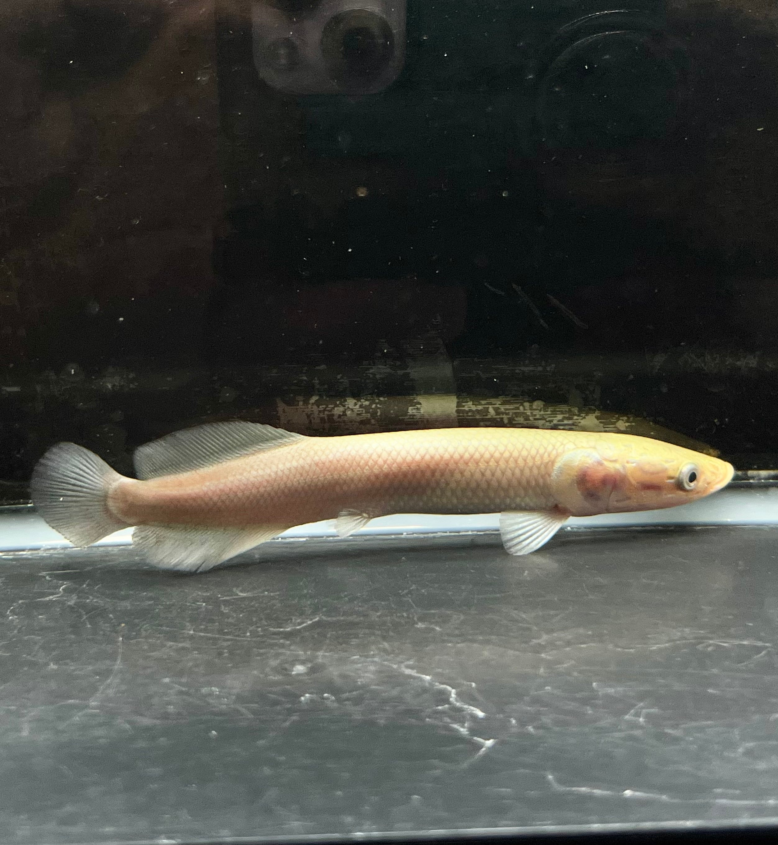 南米アマゾンの王者、ピラルクの出品です。 古代から姿を変えずに生き延びてきた“生きた化石”とも呼ばれるこの魚は、水槽内に圧倒的な存在感を放ちます。 滑らかな金属光沢を帯びた体表と、尾にかけて鮮やかな赤みが差す体色は、観るたびに違う表情を見せてくれます。 水面に浮かび上がり空気を吸う姿は圧巻で、まるで太古のロマンを感じさせます。 丈夫で飼育も比較的容易ですが、広めの水槽と安定した水質環境が必要です。 大型魚ファンの方、アロワナなどと並べて飼育されたい方に特におすすめです。 唯一無二の存在感を、ぜひご自宅のアクアリウムでお楽しみください。