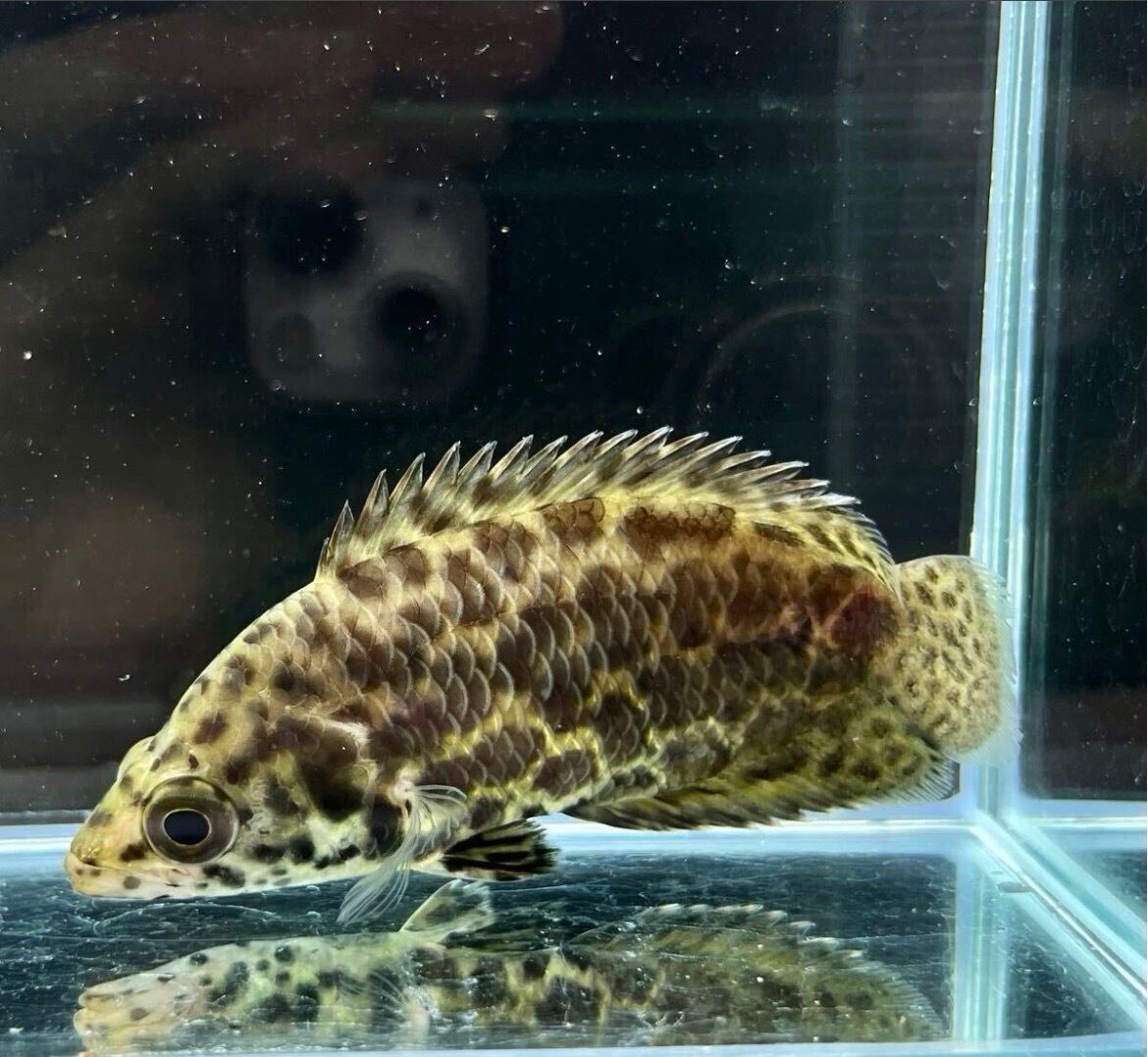 コンゴ便で入荷したレオパードクテノポマWILD 1匹です。美しい豹柄の斑模様が際立つ希少個体で、元気いっぱいの健康状態です。アナバス科の最大15cm程の中型美魚としてアクアリウムを華やかに彩ります。 コンゴ河川系原産で、中型テトラ類やコリドラスとの混泳に最適。冷凍赤虫や人工飼料を積極的に食べ、活発な泳ぎが観賞の楽しさです。成長が早くレイアウトの主役にぴったり。画像で個体の鮮やかな模様とコンディションをご確認ください!ご理解の上ご入札お待ちしています。