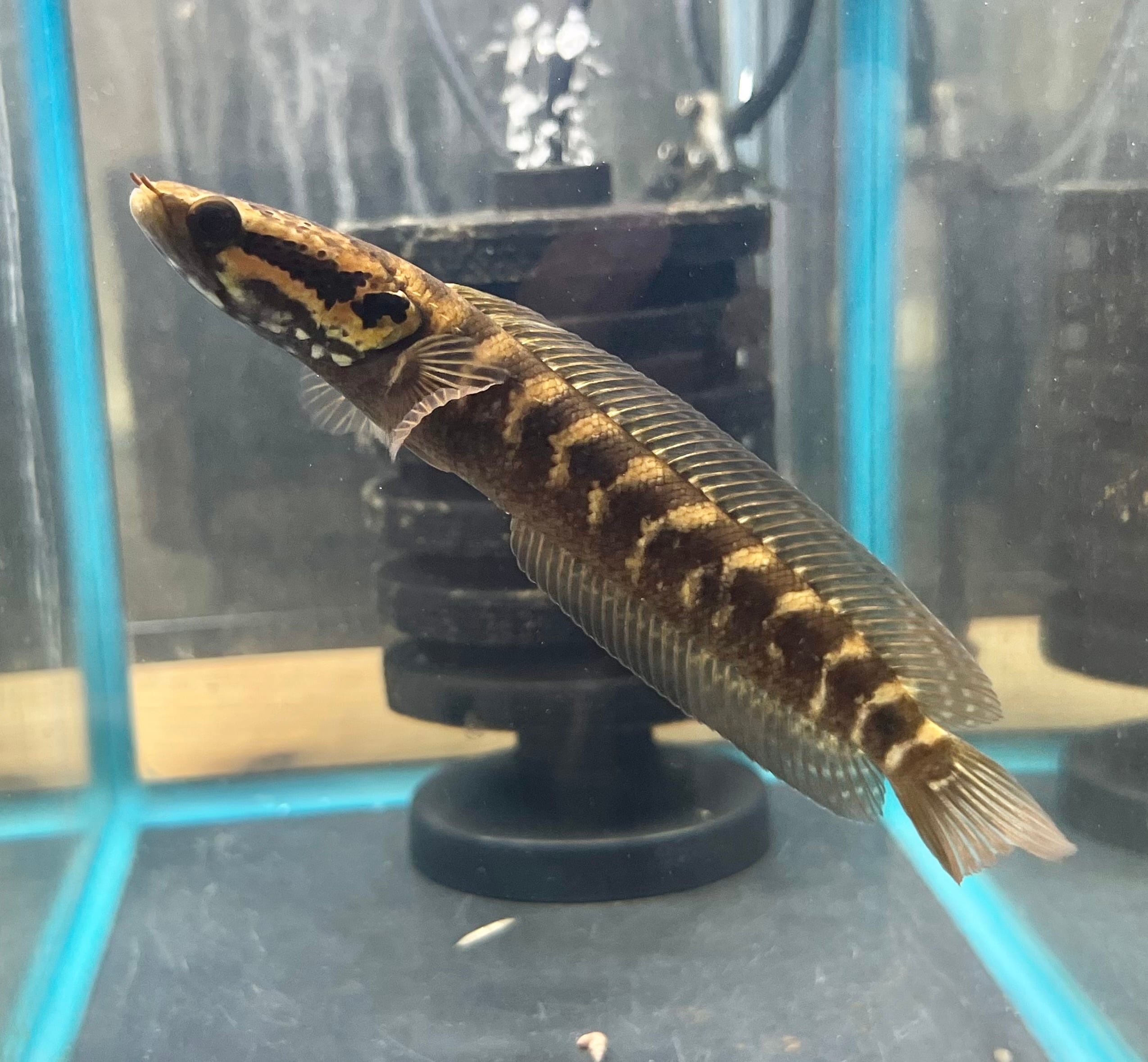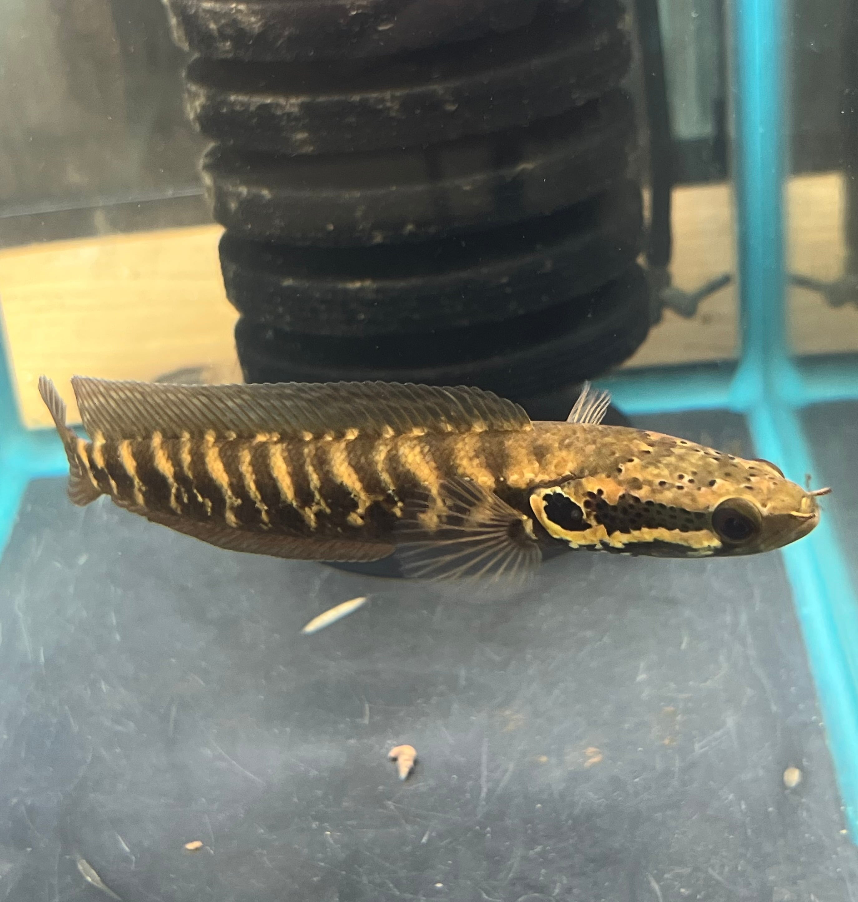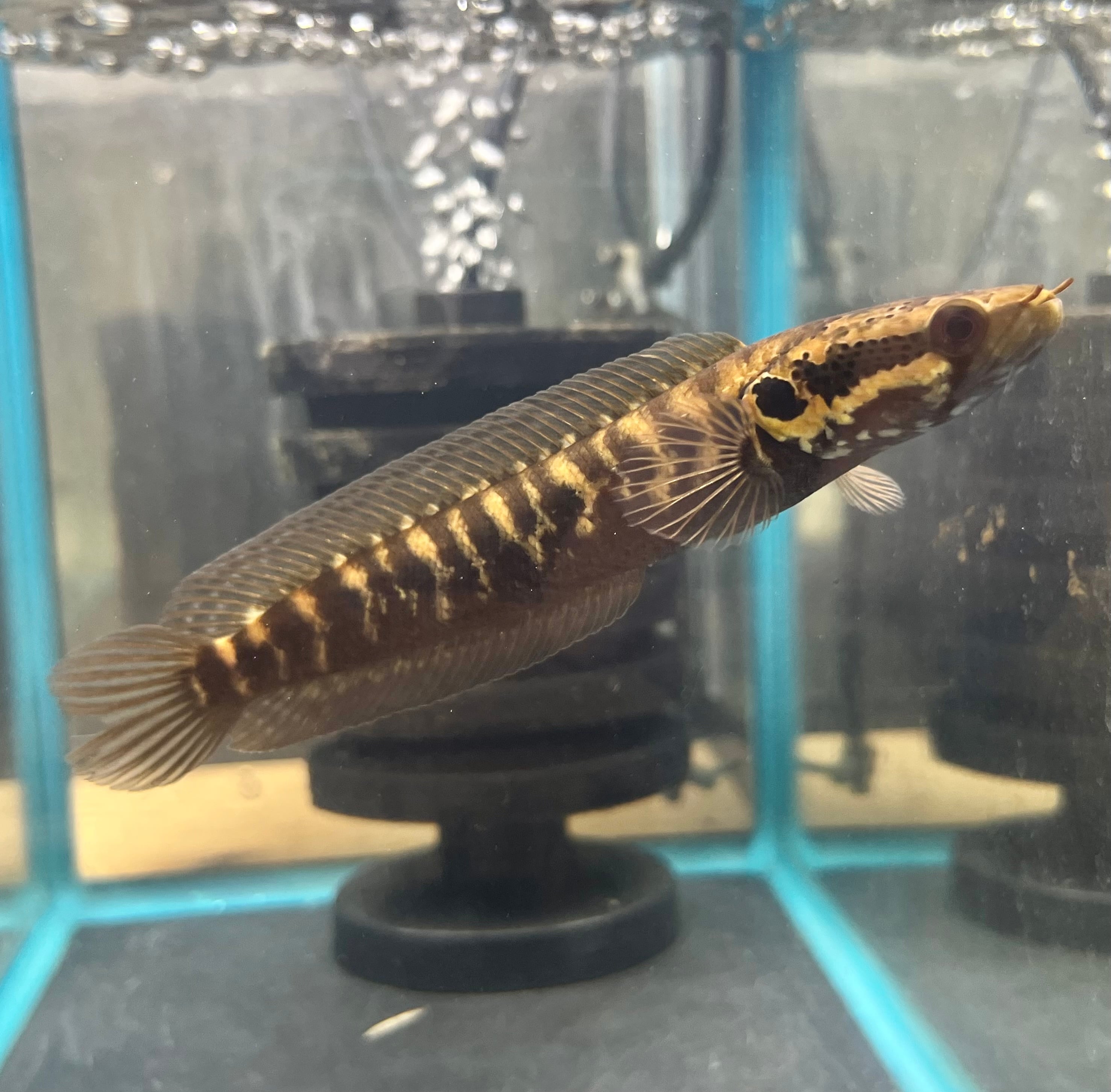 シェブロンスネークヘッドは、最大30cmの美しい斜め模様が魅力のアフリカ原産のスネークヘッドです。希少性が高く、他にはないエレガントな体色を持っています。飼育は簡単で、60~90cmの水槽で育てられ、初心者にも最適です。コレクションに最適な一品をぜひ手に入れてください!